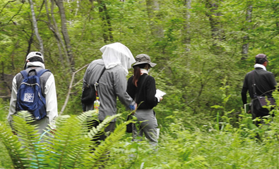 こんな服装で散策します。自然園を管理する地元有志がご案内いたします。