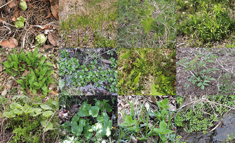 写真中段左より/⑤ギョウジャニンニク ⑥クレソン ⑦ミョウガタケ ⑧山ウド