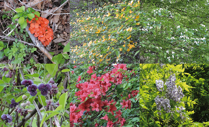 写真下段左より/④アケビ ⑤山ツツジ ⑥野フジ